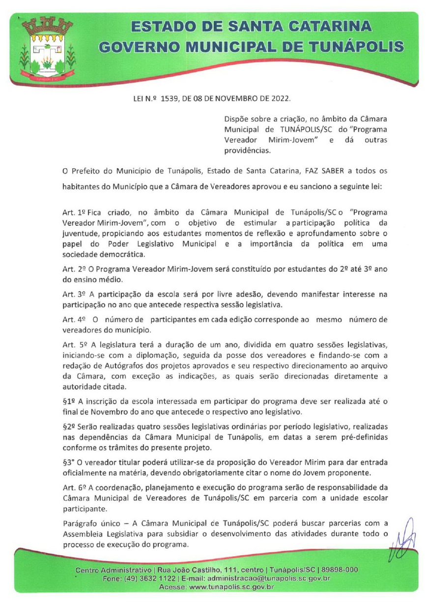 Câmara Municipal de Vereadores Tunápolis/SC