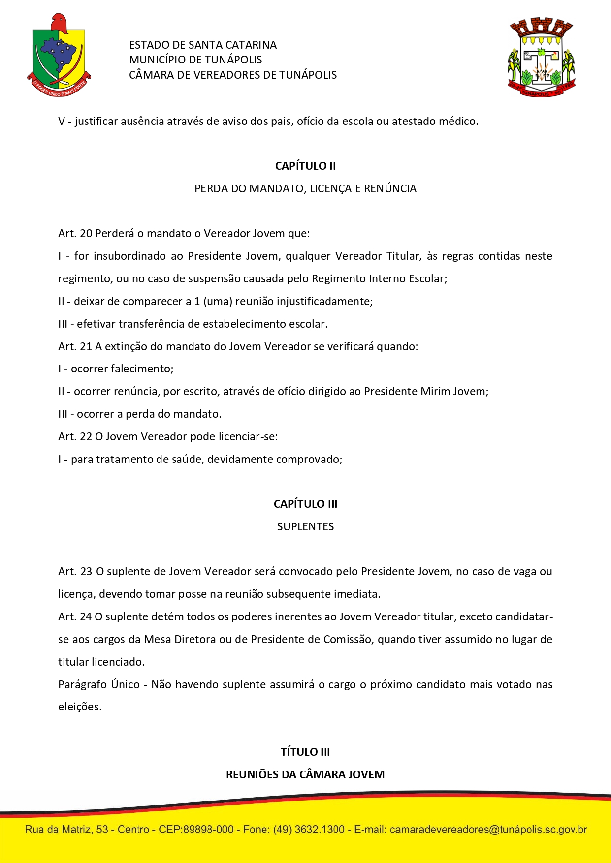 Câmara Municipal de Vereadores Tunápolis/SC