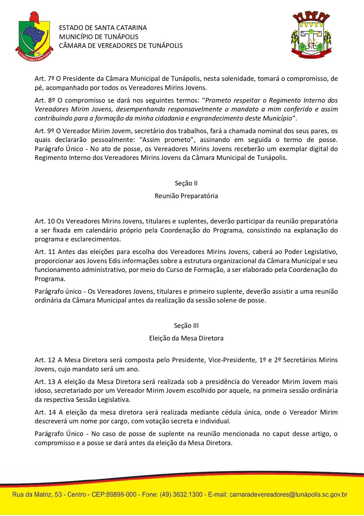 Câmara Municipal de Vereadores Tunápolis/SC