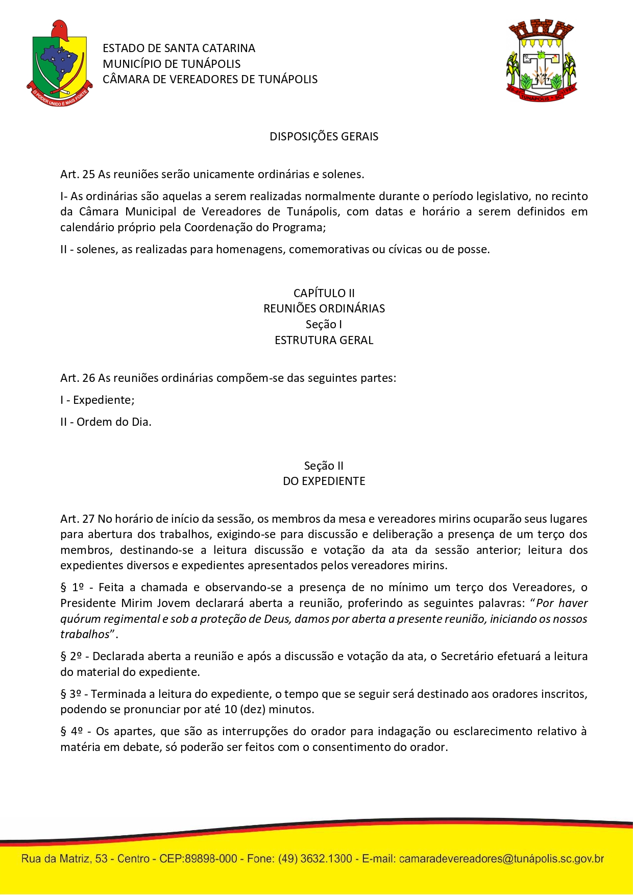 Câmara Municipal de Vereadores Tunápolis/SC