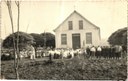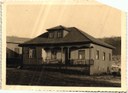 Vista parcial da vila Tunas - Casa de Albino Frantz e aos fundos a Igreja recém construída - 1954